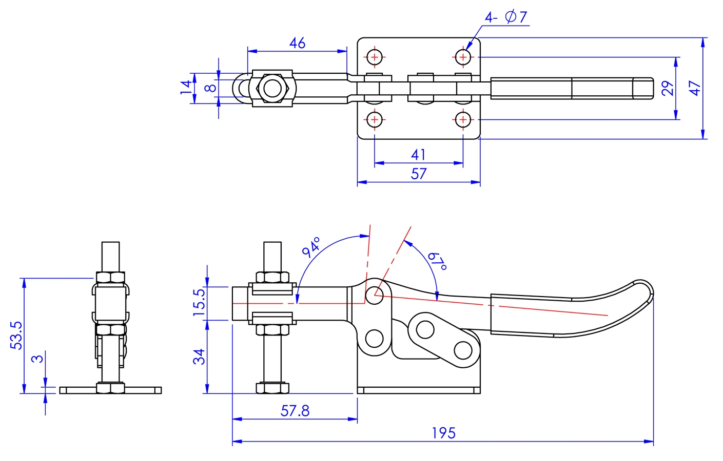 ハンドル横型 下方圧え